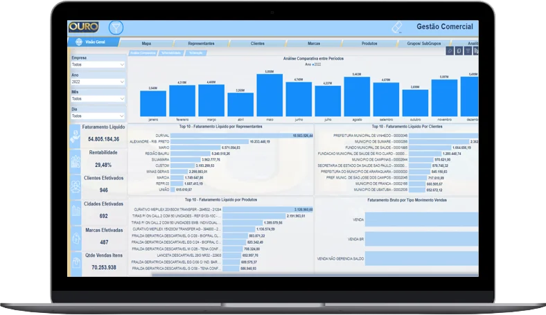Explore a excelência da inteligência de negócios em nosso site através dos nossos painéis de B.I. Oferecemos uma Visão Geral abrangente, detalhes sobre Representantes, insights sobre Clientes e análises específicas de Marcas, Produtos e Dados Analíticos.